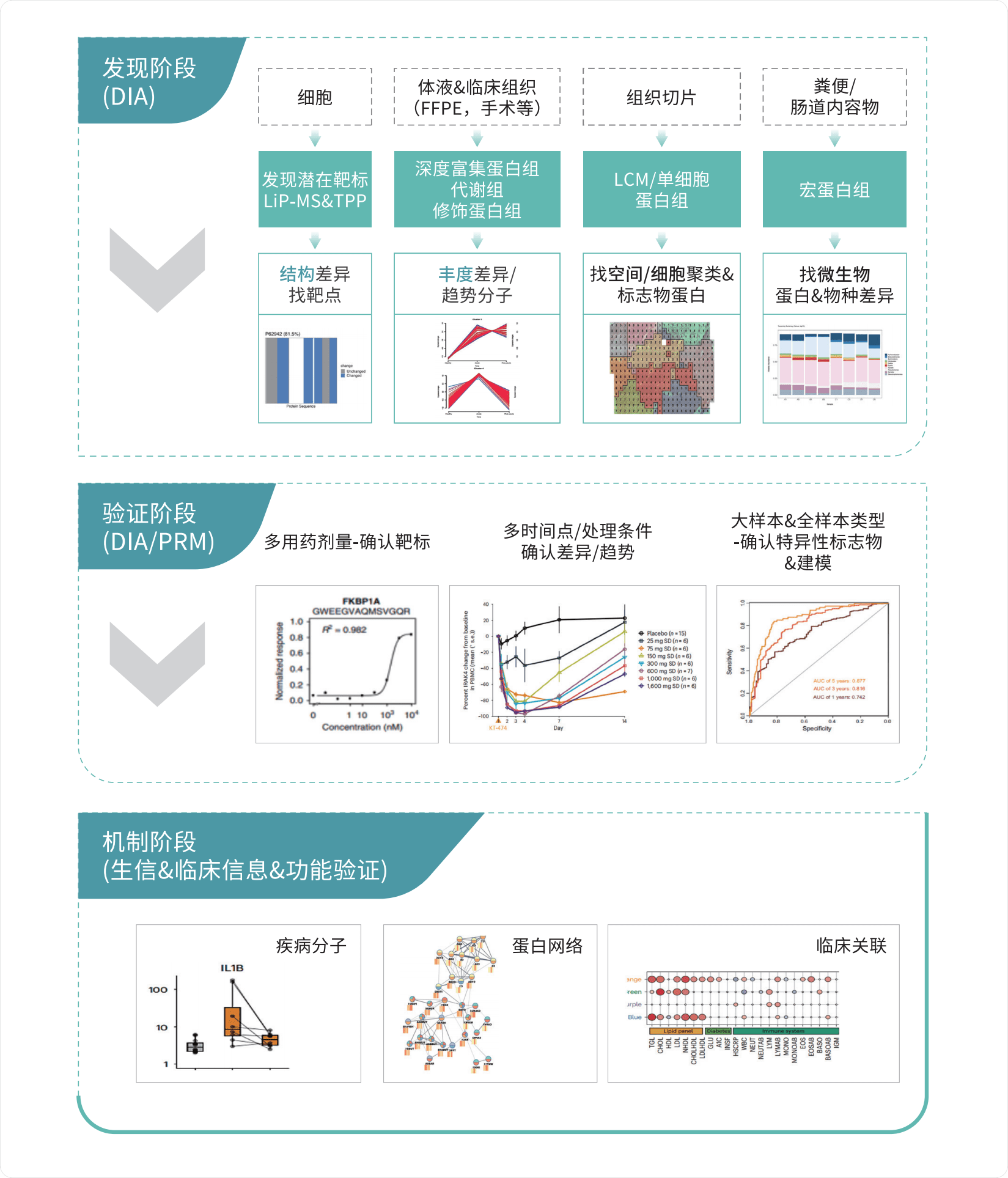 采用独家DeepPRM平台模型预测和质量检测,独家DIA-PRM联系分析方案相对定量验证;利用新型离子淌度质谱实现更高通量分析,绝对定量验证数百个蛋白,含580多种已知及常见蛋白靶标。